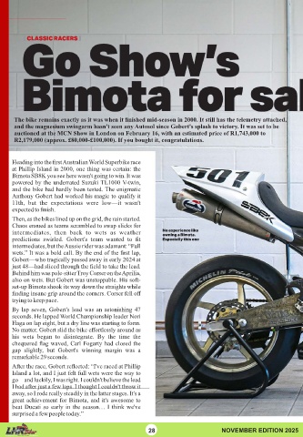 and the magnesium swingarm hasn't seen any Autosol since Gobert's splash to victory. It was set to be
