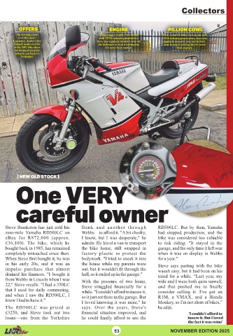 zero-mile Yamaha RD500LC on Webbs—to afford it. "A bit cheeky, had stopped production, and the