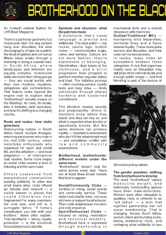 brothers,” riders often explain. focused on racing, restoration changing. Across South Africa,