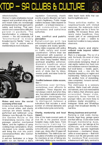 safety and training. That said, f r o m c o m m u n i t i e s , l o c a l resources, the motorcycle club’s