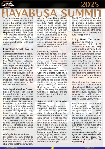 Suzuki Hayabusas echoed drawing crowds eager to see Gariep Dam will be remembered