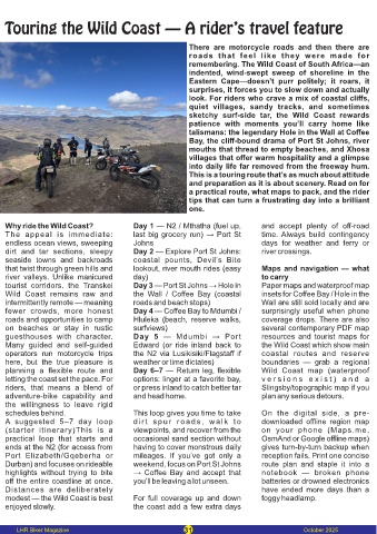 Why ride the Wild Coast?                Day 1 — N2 / Mthatha (fuel up,           and  accept  plenty  of  off-road