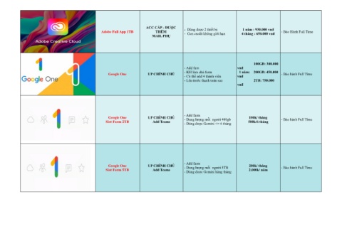 Google One UP CHÍNH CHỦ - Bảo hành Full Time