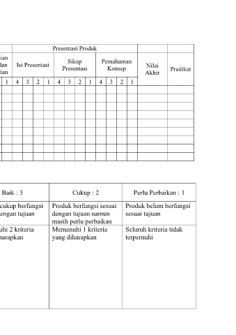 No Nama Hasil Karya Kreativitas Masalah dan Isi Presentasi Presentasi Pemahaman Nilai Predikat