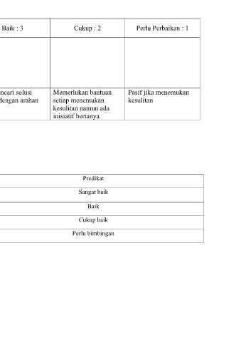 Aspek Sangat Baik : 4 Baik : 3 Cukup : 2 Perlu Perbaikan : 1