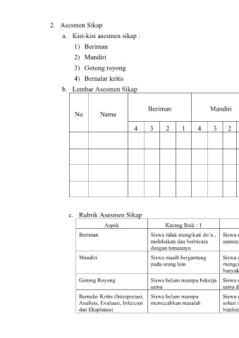 Aspek Kurang Baik : 1 Cukup : 2 Baik : 3 Sangat Baik : 4