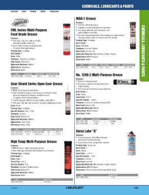 SKU Capacity Wt. Packing Type NLGI Grade Flash Point Spray Lube “A”
