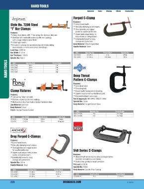 SKU Jaw Width Spindle Diam Handle Type SKU Opening Size Throat Depth