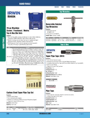 HAND TOOLS • IRWIN Industrial Tools® sets the standard for delivering quality SKU Type Tap Size Used With Overall Length