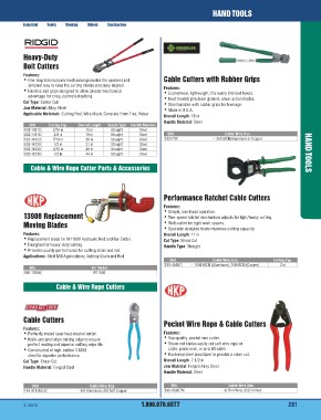 SKU Cutting Cap. Overall Length Handle Type Handle Material SKU Cable/Wire Size HAND TOOLS