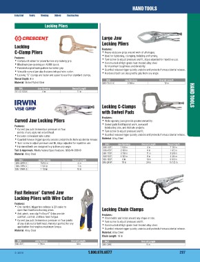 • Locking “C” clamps are faster and easier to use than standard clamps. for maximum toughness and durability.