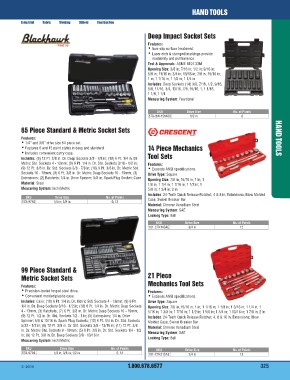 5/32 ‑ 1/2 in; (8) 12 Pt. 3/8 in. Dr. Std. Sockets 3/8 ‑ 13/16 in; (11) 12 Pt. 3/8 Measuring System: SAE
