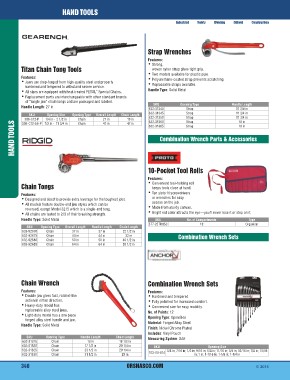 HAND TOOLS SKU Opening Size Opening Type Overall Length Chain Length SKU Opening Type Handle Length