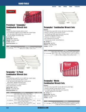 Combination Wrench Sets F•eaIntucrreeass: ed torque applied to fastener with fewer rounded edges.