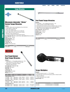 HAND TOOLS Micrometer Adjustable “Clicker” Foot Pound Torque Wrenches