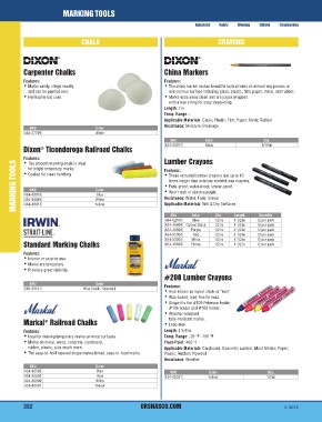 Standard Marking Chalks SKU Color Dia. Length Quantity