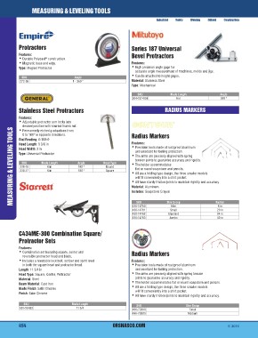 MEASURING & LEVELING TOOLS •FeaAtdujruesst:able protractor arm locks into Radius Markers