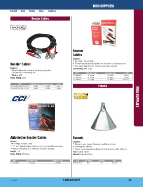 • No‑Tangle™ Booster Cable. • Capacity indicates what the funnel will hold when the outlet is blocked.