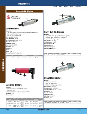 22,500 22 CFM 101.3 dB 3.0 m/s2 SKU Collet Size Power Cap. Length Width Height