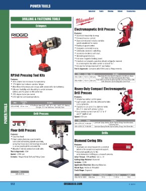 F•ea3t0u%ressm: aller tool increases manuverability. 495‑4206‑1 12.5 A 350 rpm 3/4” Motor for Electromagnetic Drill Press