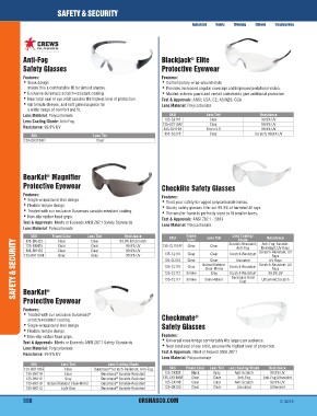 SAFETY & SECURITY SKU Frame Color Lens Tint Resistance SKU Frame Lens Tint Lens Coating/ Resistance
