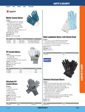 Coated Gloves F•eaHtiugrheess:t permeation resistance to gases and water vapors.