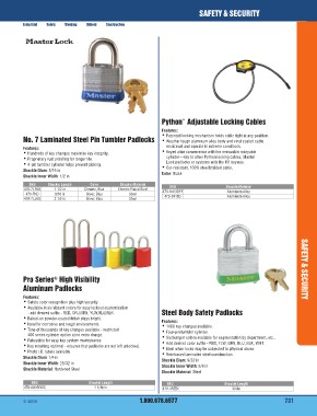 No. 7 Laminated Steel Pin Tumbler Padlocks Python™ Adjustable Locking Cables