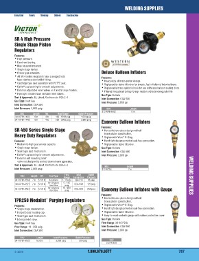 SR 450 Series Single Stage brass piston construction. WELDING SUPPLIES
