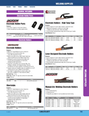 Electrode Holders SKU Process Amps Electrode Cap. Cable Cap. Length