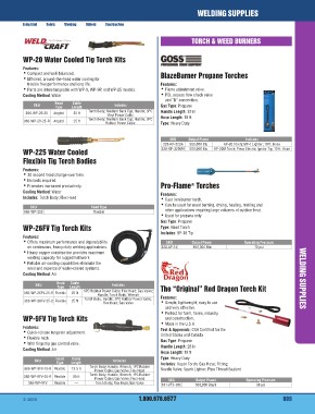 366-WP-9FV-25-R Flexible Torch Body; Flex Head; Gas Valve SKU Output Power Operating Pressure