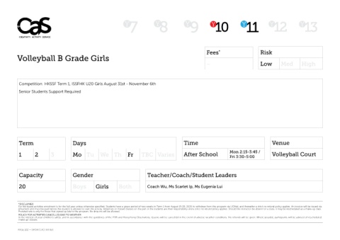 Competition: HKSSF Term 1, ISSFHK U20 Girls August 31st - November 6th