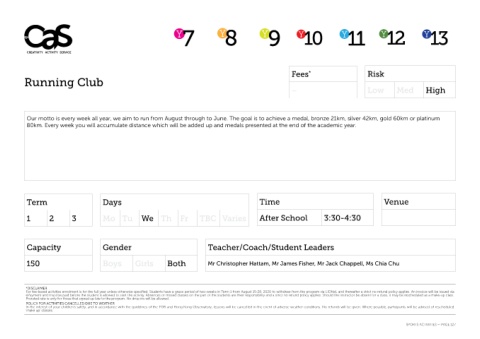 80km. Every week you will accumulate distance which will be added up and medals presented at the end of the academic year.