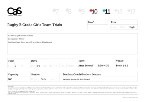 Additional Fees: Purchase of Shorts/Socks, Mouthguard