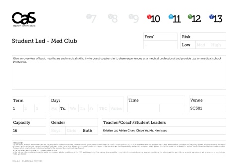 For fee-based activities enrolment is for the full year unless otherwise specified. Students have a grace period of two-weeks in Term 1 from August 15-28, 2020 to withdraw from the program via LIONeL and thereafter a strict no refund policy applies. An invoice will be issued via