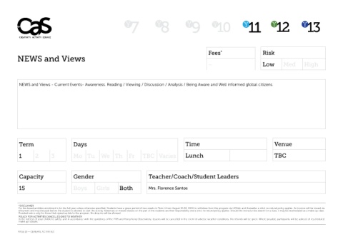 For fee-based activities enrolment is for the full year unless otherwise specified. Students have a grace period of two-weeks in Term 1 from August 15-28, 2020 to withdraw from the program via LIONeL and thereafter a strict no refund policy applies. An invoice will be issued via