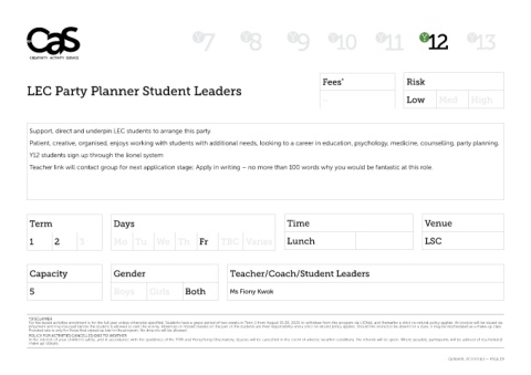 Teacher link will contact group for next application stage: Apply in writing – no more than 100 words why you would be fantastic at this role.