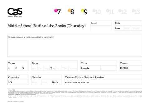 For fee-based activities enrolment is for the full year unless otherwise specified. Students have a grace period of two-weeks in Term 1 from August 15-28, 2020 to withdraw from the program via LIONeL and thereafter a strict no refund policy applies. An invoice will be issued via