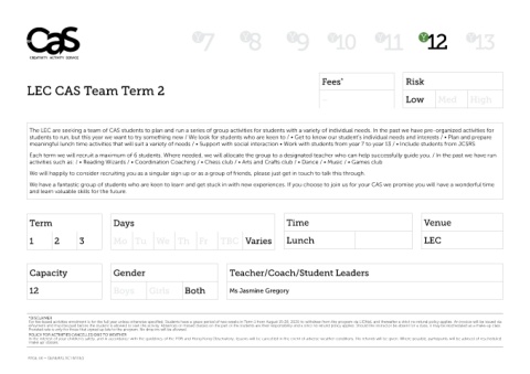 students to run, but this year we want to try something new / We look for students who are keen to / • Get to know our student’s individual needs and interests / • Plan and prepare