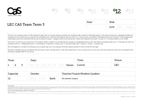 students to run, but this year we want to try something new / We look for students who are keen to / • Get to know our student’s individual needs and interests / • Plan and prepare