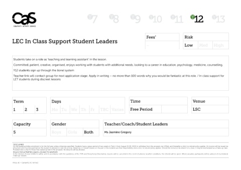 Teacher link will contact group for next application stage: Apply in writing – no more than 100 words why you would be fantastic at this role. / In class support for
