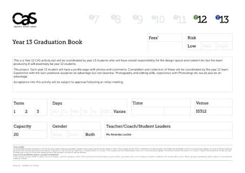 This is a Year 12 CAS activity but will be coordinated by year 13 students who will have overall responsibility for the design layout and content etc but the team