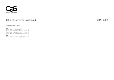Table of Contents Continued 2020-2021