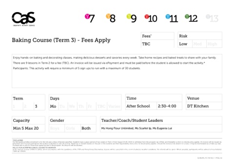There are 9 lessons in Term 2 for a fee (TBC). An invoice will be issued via ePayment and must be paid before the student is allowed to start the activity.*