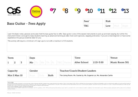 For fee-based activities enrolment is for the full year unless otherwise specified. Students have a grace period of two-weeks in Term 1 from August 15-28, 2020 to withdraw from the program via LIONeL and thereafter a strict no refund policy applies. An invoice will be issued via