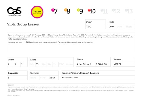 Open to all students in years 7-10. Tuesdays 3.30–4.30pm. Group size of 5 students. Room MS-202. Particularly for student musicians looking to start a second