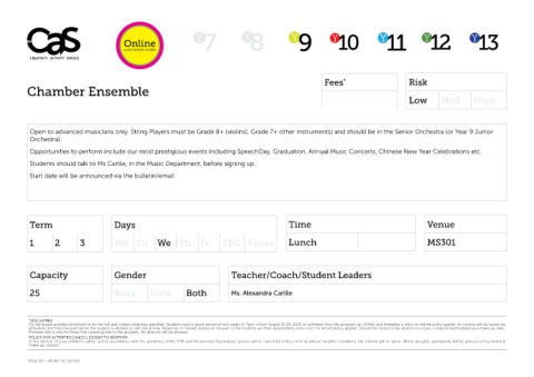 Students should talk to Ms Carlile, in the Music Department, before signing up.