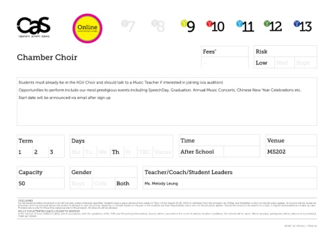 Students must already be in the KGV Choir and should talk to a Music Teacher if interested in joining (via audition).