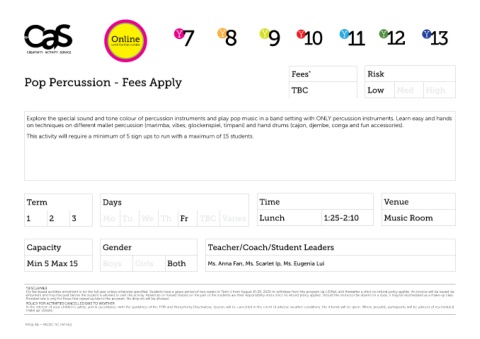 For fee-based activities enrolment is for the full year unless otherwise specified. Students have a grace period of two-weeks in Term 1 from August 15-28, 2020 to withdraw from the program via LIONeL and thereafter a strict no refund policy applies. An invoice will be issued via