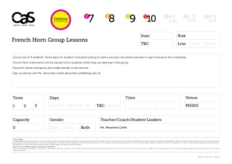 Sign up diectly with Ms. Alexandra Carlile alexandra.carlile@kgv.edu.hk