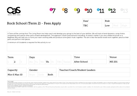 Rock School (Term 2) - Fees Apply